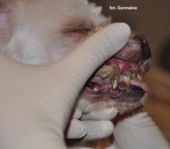 Arlo trafił do nas bardzo zaniedbany, z ogromnym kamieniem nazębnym i zgnilizną w pyszczku. psiak bardzo cierpiał, nie mógł zamknąć pyszczka ani jeść.