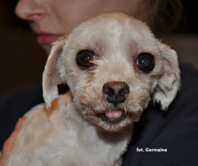 Arlo jest młodziutkim psiakiem z pseudo hodowli w typie rasy maltańczyk, który przeszedł pod opiekę naszej Fundacji (waga: 3,5 kg).