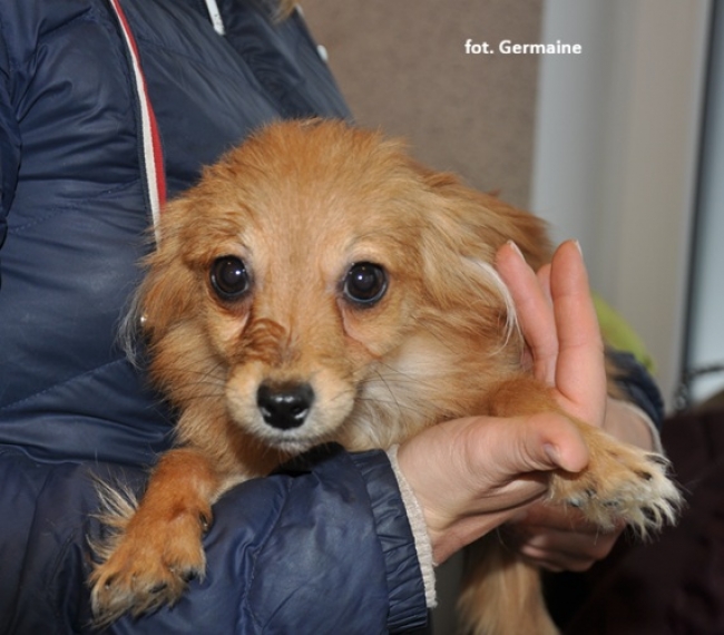 Grzesio jest drobniutki, waży 1,5 kg - będzie drobniutkim psiakiem.