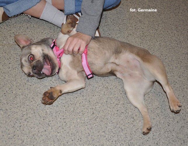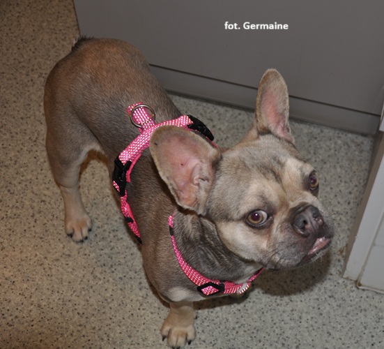 Poppy jest roczną sunią w typie rasy buldog francuski, która wczoraj przeszła pod naszą opiekę razem z buldożką Daisy.