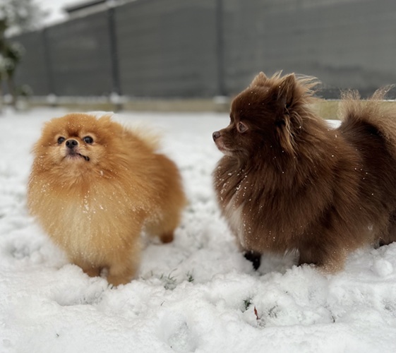 Pusia – nasza mała wojowniczka, uratowana z pseudohodowli, właśnie przeżyła swoją pierwszą zimę i pierwszy w życiu kontakt ze śniegiem ❄️🐾