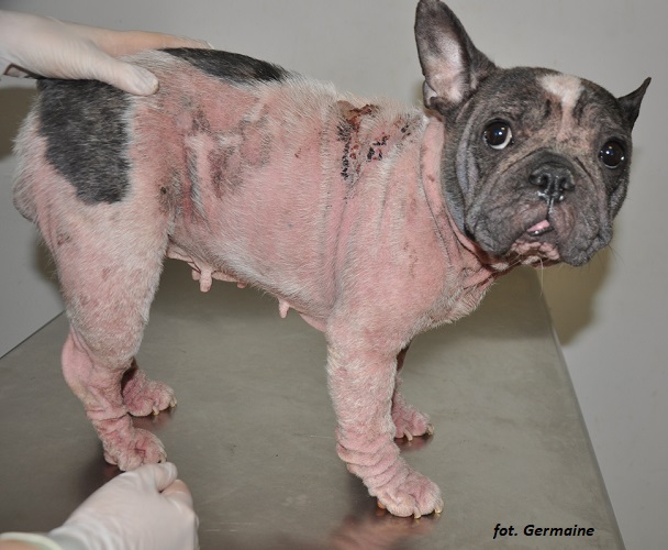 Miała konsultację w lecznicy Dermawet, wdrożono leczenie, była kąpana w cieczy kalifornijskiej i stan jej skóry znacznie się poprawił, zaczęła porastać.
