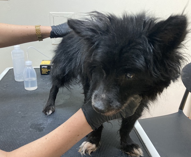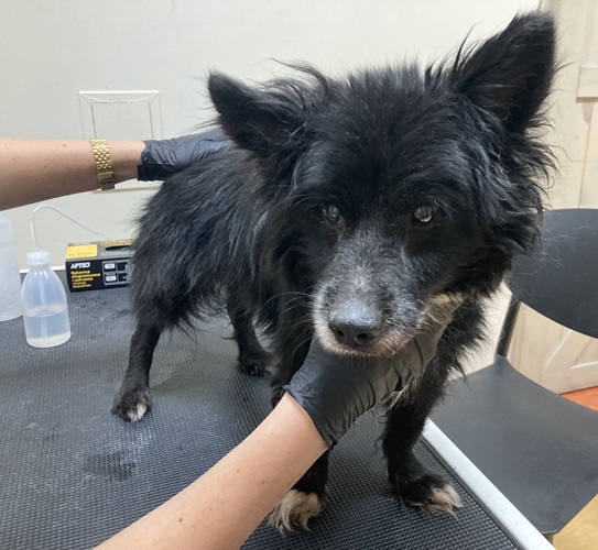 Trafił do nas w bardzo złym stanie, z biegunką, skołtuniony, brudny, bardzo wychudzony.