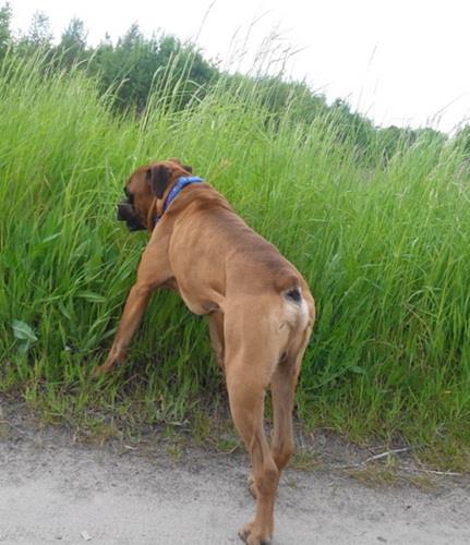 Nadal gryzie smycz, przynajmniej na początku, zanim nie dostanie słownej reprymendy, także nowa smycz czeka na lepsze czasy, a smycz po poprzednim boksiu jest dogryzana.