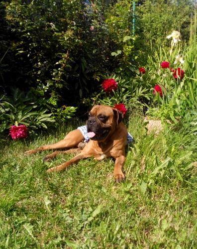 Wczorajsza podróż przebiegła spokojnie, boksiu był grzeczny, przespał prawie całą drogę. W domku przywitały go nasze koty, na które praktycznie nie zwrócił uwagi, ani one na niego, (nie wykazuje żadnej agresji) , zwiedził całe podwórko mimo późnej pory oraz wszystkie pomieszczenia i zabrał się za jedzenie co nas bardzo ucieszyło, bo w podróży na postoju nie chciał, ani pić , ani jeść.