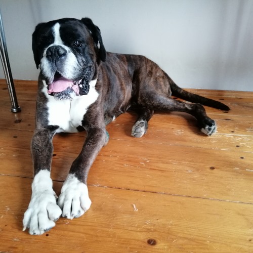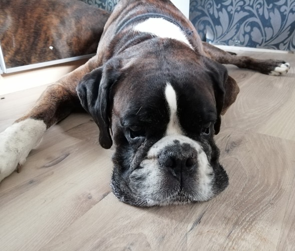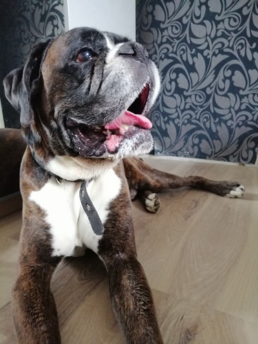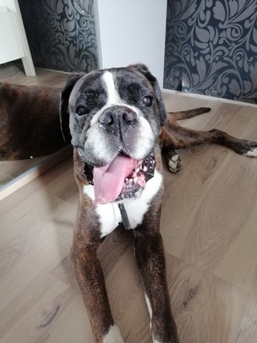 Nasz piękny Orion zamieszkał kilka dni temu w nowym domu, w którym już mieszka adoptowana od nas kilka lat temu bokserka Pika.