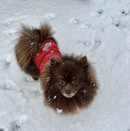 Pusia – nasza mała wojowniczka, uratowana z pseudohodowli, właśnie przeżyła swoją pierwszą zimę i pierwszy w życiu kontakt ze śniegiem ❄️🐾