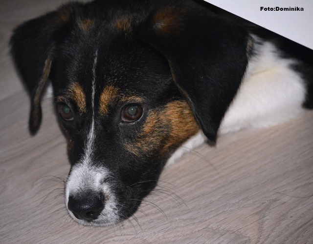 "Mika jest miłym, grzecznym, radosnym psim dzieckiem. Łagodna do innych psów, lekko wystraszona, ale ciekawa życia. Aktualnie waży 9 kg."