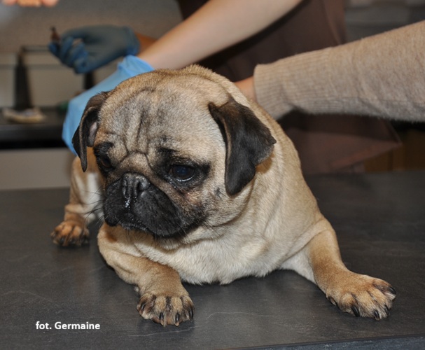 Alena jest młodziutką sunią w typie rasy mops (waga: 7,55 kg), która wczoraj przeszła pod opiekę naszej Fundacji.