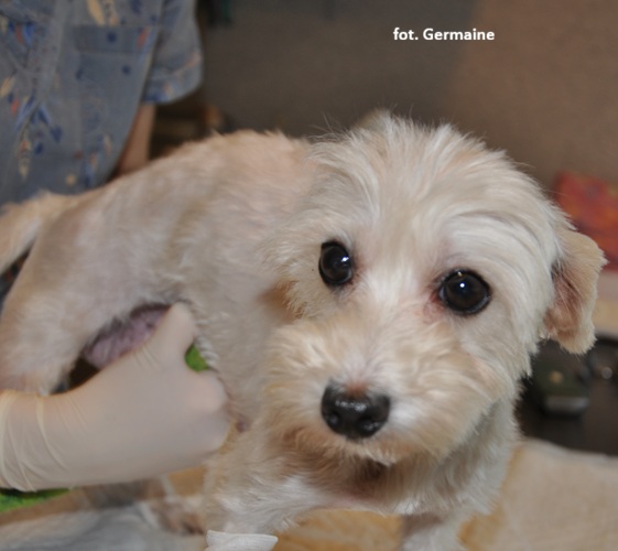 Kora jest młodziutką sunią w typie rasy maltańczyk (waga: 4 kg), która przeszła pod opiekę naszej Fundacji.