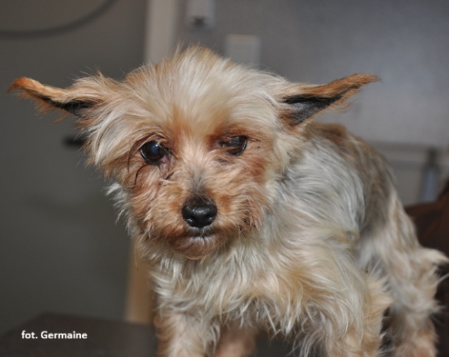Niunia jest kruszynką (waga: 2,55 kg) w typie rasy Yorkshire Terrier, która została zrzeczona na rzecz naszej Fundacji.