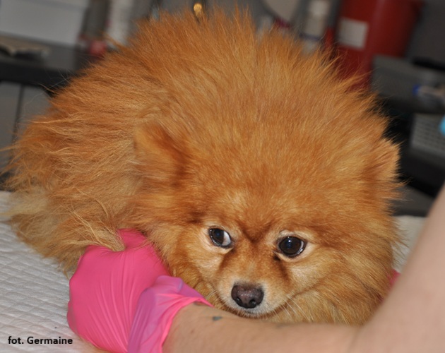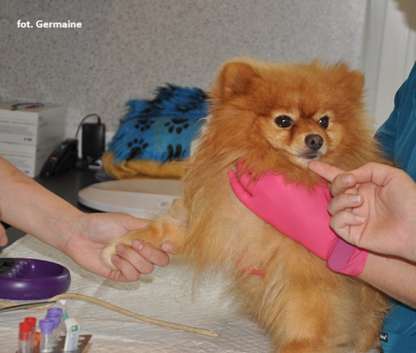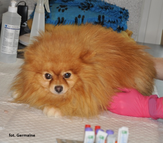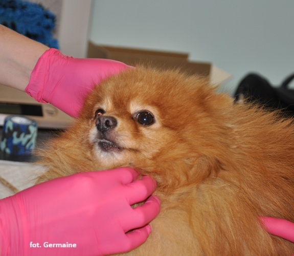 W lecznicy został odrobaczony i odpchlony, zaszczepiony, wykonano USG jamy brzusznej, została pobrana krew na morfologię i biochemię.
