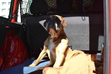 W mieszkaniu Kiniu nie potrafi usiedzieć w jednym miejscu, nawet w samochodzie podziwia widoki na siedząco, bo w końcu ile można tak leżeć.. Apetyt nadal wilczy, co nas bardzo cieszy, humorek świetny, chęć do walki ogromna."