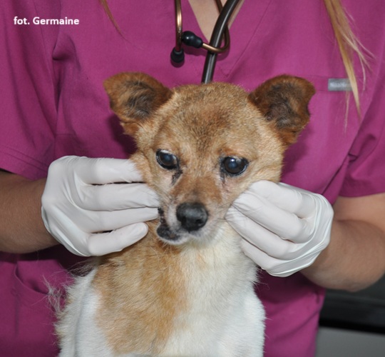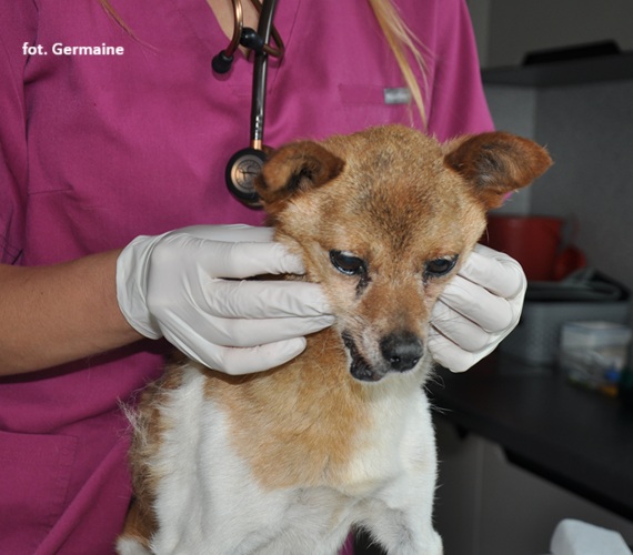 Niestety trafił do nas bardzo słabiutki, nie chciał jeść, wyniki krwi wykazały bardzo podniesione parametry trzustkowe - silny stan zapalny trzustki. Staruszek miał też duży szmer w sercu. Walczyliśmy o niego, woziliśmy codziennie do lecznicy, w szpitalu dostawał kroplówki, leki osłonowe, antybiotyki.